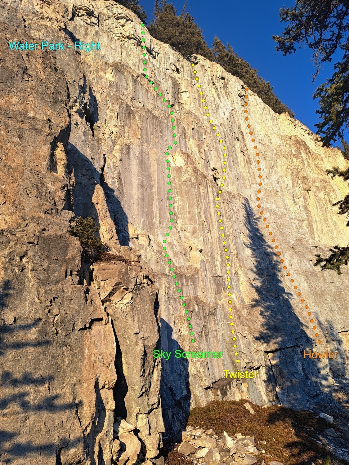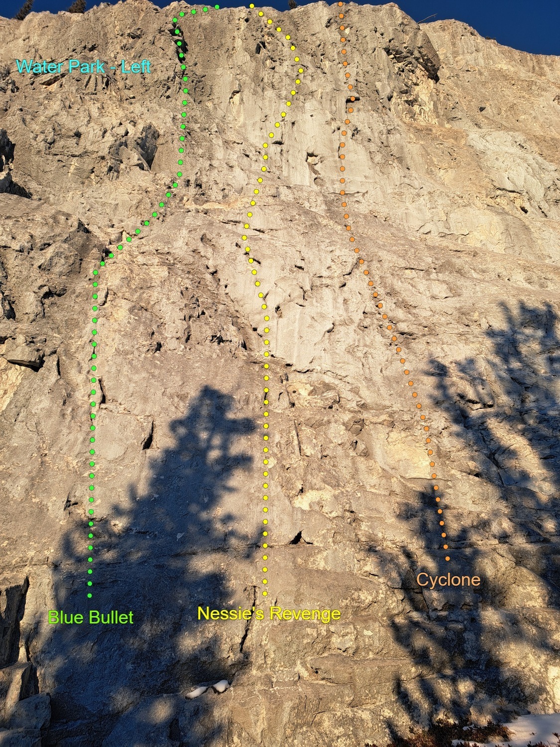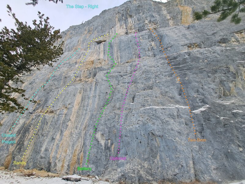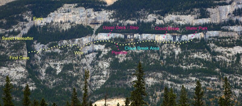 Despite the long approach, Bataan is certainly a contender for the best limestone in the Bow Valley!! The quality of these water sculpted cliffs is unparalleled, with magnificent positions high above the scenic valley. Bataan's vertical to slightly overhanging walls feature many long and sustained routes that are littered with pockets, jugs and edges - endurance is the name of the game. Climbers are slowly realizing the huge potential of this crag, and that the rewards of climbing on pristine blue grey and yellow streaks far outweigh the hike.