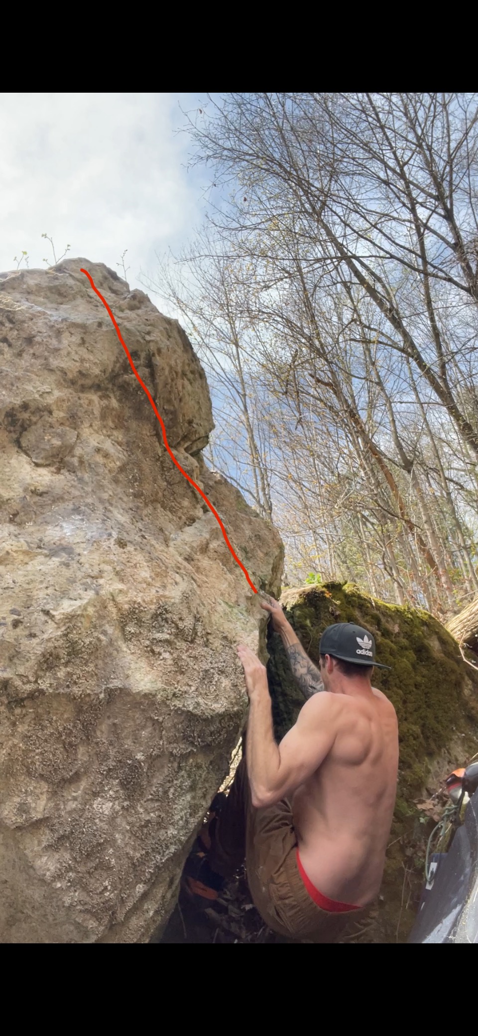 One of the largest boulders in the crag with maybe the best rock quality. This sub area will include surrounding climbs aswell. This boulder is west of the head wall and fang if you enter from the east/ warm up area.