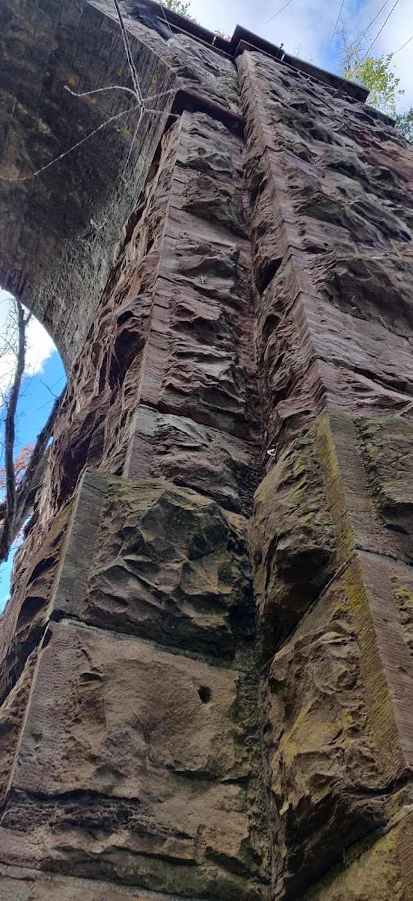 The remains of an old train bridge that spans the Jordan Harbour. The area consists of a few stand alone pillars and a few that are connected by arches. Mainly bolted sport climbs with one or two man-made simulated ice climbs.
