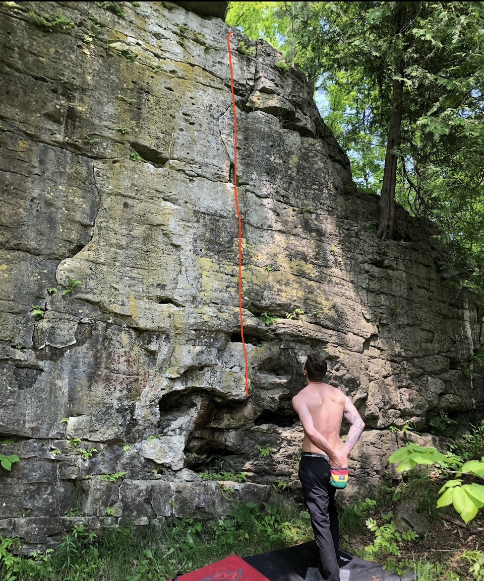 Sunset rock is on across the road from 7435 Twiss rd. in Milton ontario. Just uphill from the bruce trail head on the right. There is one or two parking spots right infront of the cliff but there isn’t much of a shoulder and some neighbours might say something if you park there. It is best to ark at he bruce trail head and just walk the two minutes up the road as to not cause any access issues in the future.