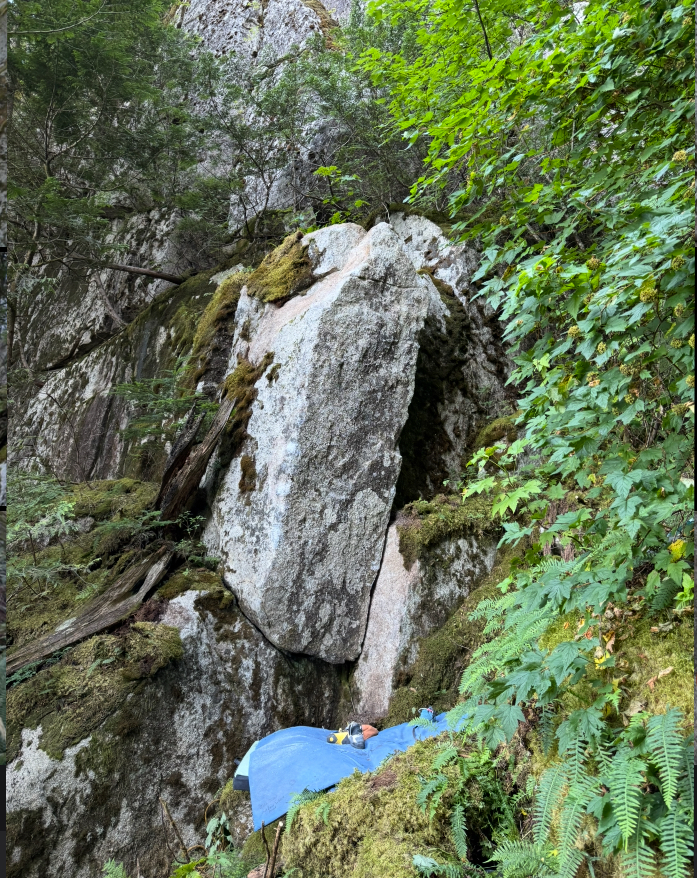The Embrace is just a bit further up that hill towards the South Gully talus, near the base of Rock On. From Arrowhead, follow that short cliff band up the hill until it wraps around to the left. The South Gully will be on your right. The Embrace will be seen on the left.