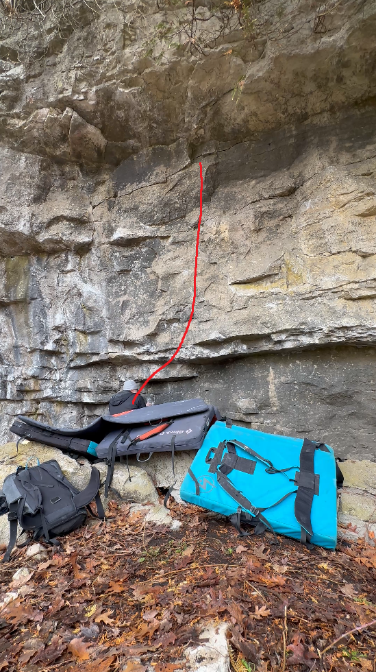 Starting as for Exterminator, go up to the two crimps, but instead of going left to the sloper, go right into a sidepull/pinch, then up to two crimps, and finish as Vermin.